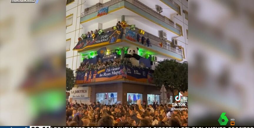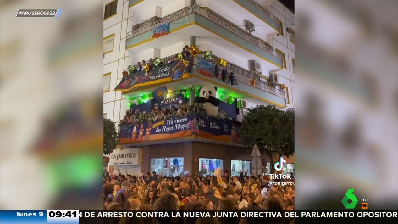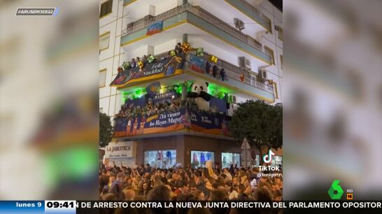 Como si fuera un niño más y con su misma ilusión, este oso panda ha disfrutado como un chiquillo de la cabalgata de Reyes de Sevilla 2023. Saltando y bailando desde su balcón el tema 'Será porque te amo', este simpático y gigantesco animal ha llamado la atención de todos los allí presentes y también de los aruser@s, pasando a formar parte de la recopilación con los mejores momentos de las cabalgatas de este año.