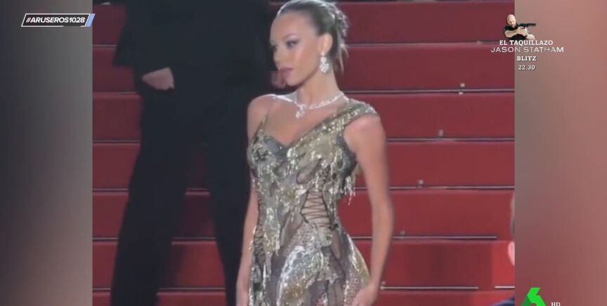"El Festival de Cannesnos está dando mucho trabajo", destaca Tatiana Arús en el plató de Aruser@s. Y es que han sido muchos los famosos nacionales e internacionales que han desfilado por su alfombra roja. Por ejemplo, la española Ester Expósito, que eclipsó en la alfombra roja con un vestido de Versace para presentar su nueva película.