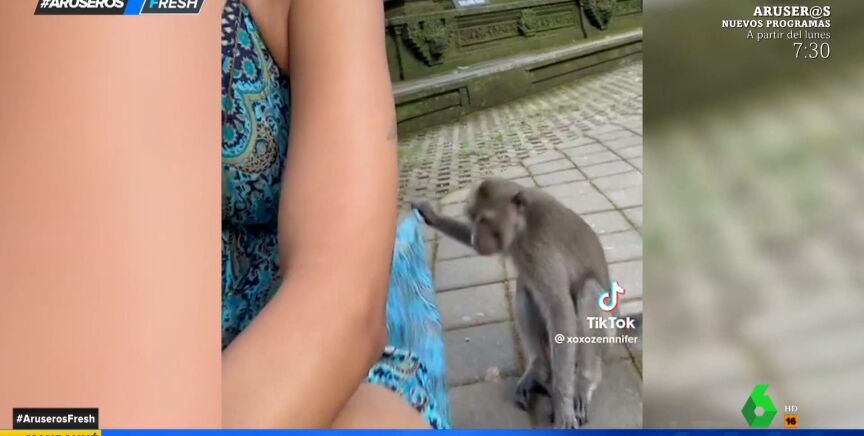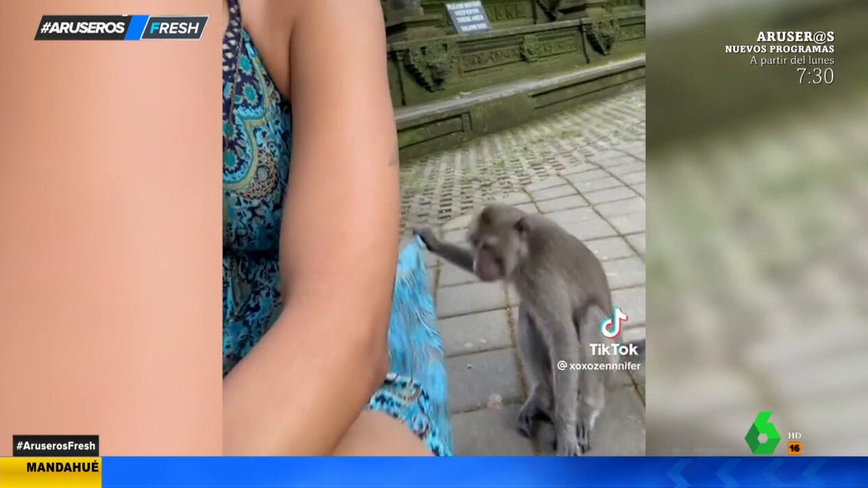 Esto no es una "monada": dos descarados simios levantan la falda de una turista