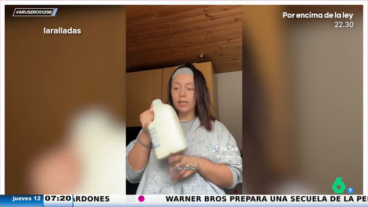 La joven sale del establecimiento con una compra de 12,40 euros y comienza a enseñar a sus seguidores todo lo que ha comprado: "Tres cebollas españolas, tres ajos, 200 gramos de champiñones laminados, perejil, seis huevos, mozzarella, dos litros de leche, brócoli y guisantes". "¿Qué os parece?", pregunta a los internautas.