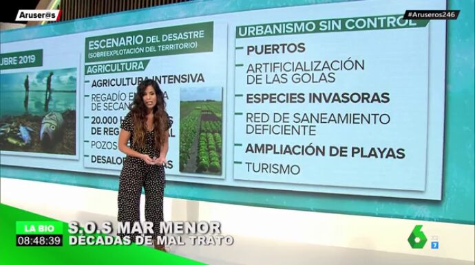 La sobreexplotación del territorio, los pozos ilegales o la contaminación de sus aguas son algunos de los factores que han llevado al Mar Menor a convertirse en una zona catastrófica.Una gran problemática que hace ya cuatro décadas que está castigando sus aguas. Evelyn Segura hace una radiografía de cuál es la escena de esta catástrofe.