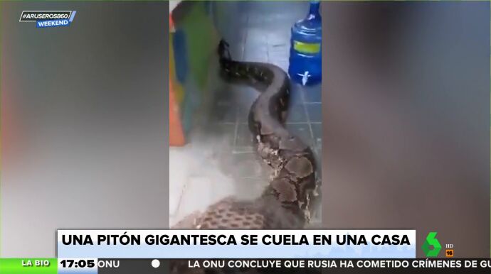 "Pueden llegar a medir hasta 8 metros" afirma Evelyn Segura tras contemplar el vídeo de esta enorme serpiente pitón que se ha colado en una casa, no sabemos con qué propósito.