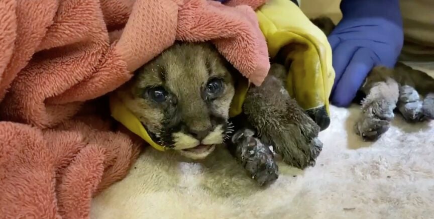 Un puma de pocas semanas de vida ha sido rescatado en los incendios forestales de California. Un bombero lo encontró en el condado de Shasta el pasado domingo y fue trasladado al Departamento de Pesca y Vida Silvestre de California.
