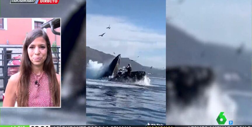 La bióloga tranquiliza a los espectadores afirmando que "solo busca a los peces" y que "no somos para nada presa de ninguna ballena". "Peligro peligro, no, pero susto sí", reconoce Segura.