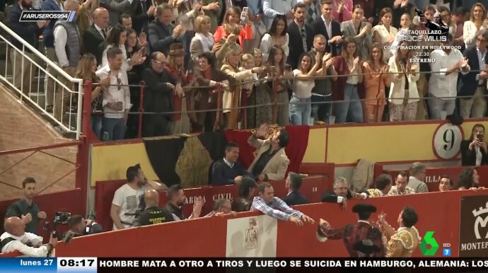 El exnovio de Victoria Federica regala una rosa a la infanta Elena en una corrida de toros