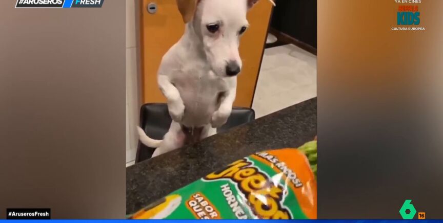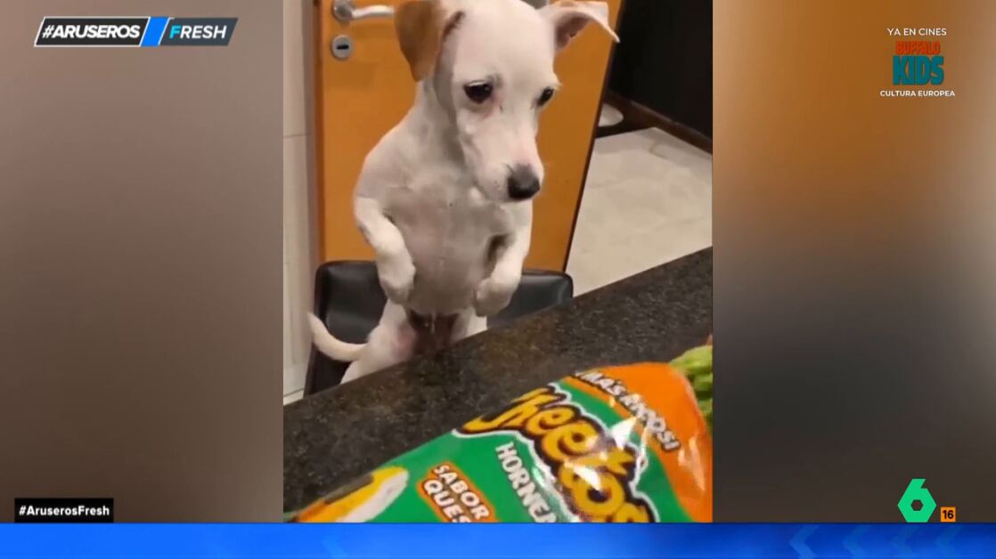 Un dueño engaña a su perro sacando un trozo de lechuga de una bolsa de patatas fritas y la reacción del perro no tiene desperdicio. ¡Se la ha colado!