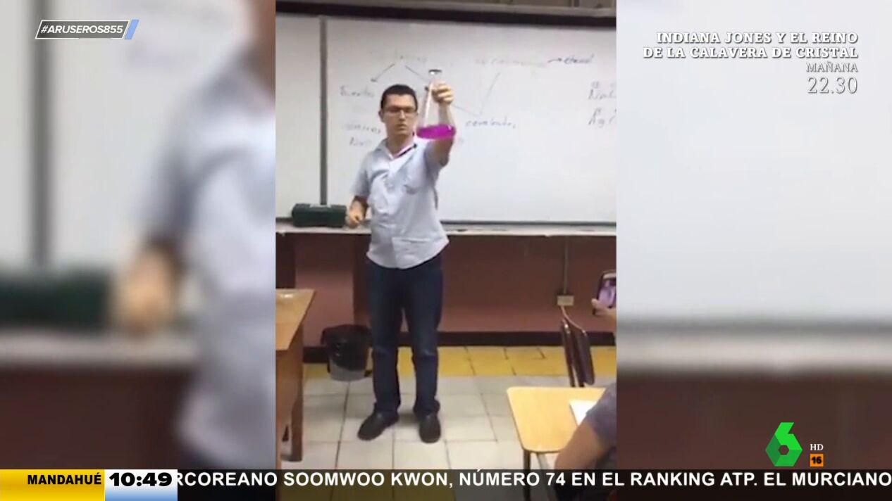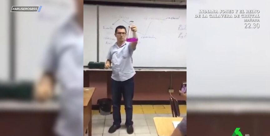 En esta clase de química de una universidad, el profesor intenta enseñar a los alumnos una valiosa lección, pero acaban aprendiendo otra muy diferente: la ciencia, a veces, puede resultar peligrosa, tal y como se muestra en este vídeo de Aruser@s.