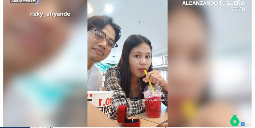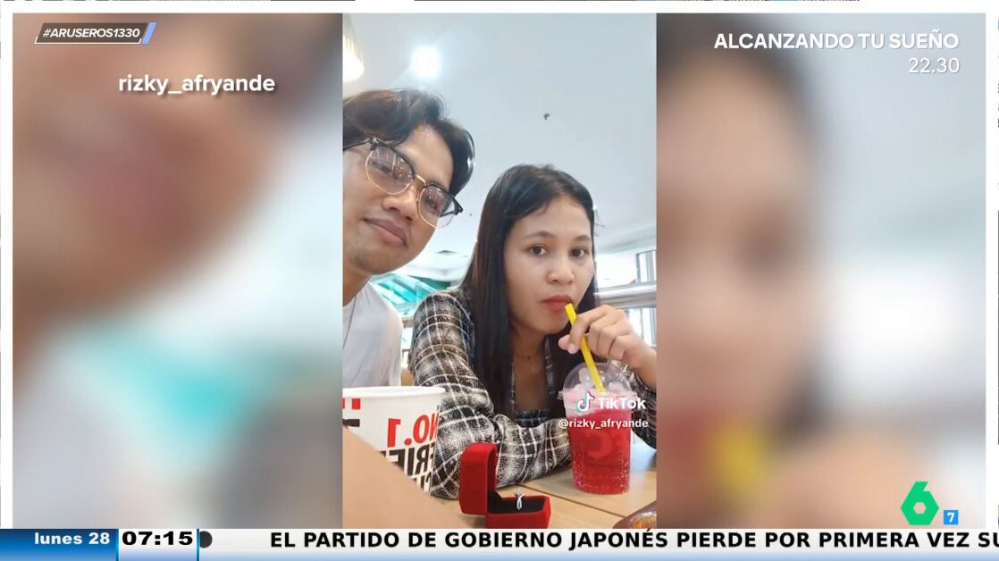 Este vídeo que presenta Hans Arús en el plató de Aruser@s tiene más de 24 millones de visualizaciones e infinidad de comentarios graciosos, y es que el momento no es para menos. Un novio ha decidido sorprender a su novia colocando el anillo de compromiso delante de ella mientras están comiendo una hamburguesa, pero lo hace de una forma "tan sigilosa" que la chica tarda mucho en reaccionar.