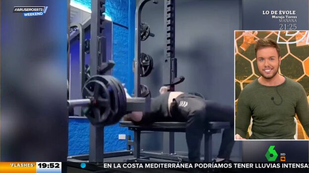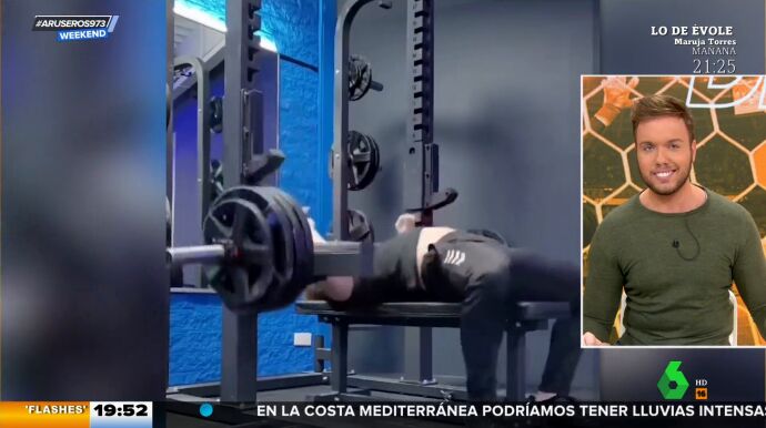 Este joven no se llevó un buen recuerdo de este día en el gimnasio. El vídeo de Aruser@s Weekend que acompaña a la noticia recoge el momento en el que un hombre intenta hacer press de banca con 160 kilos de peso.