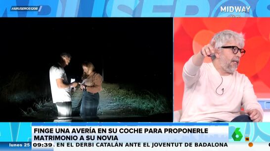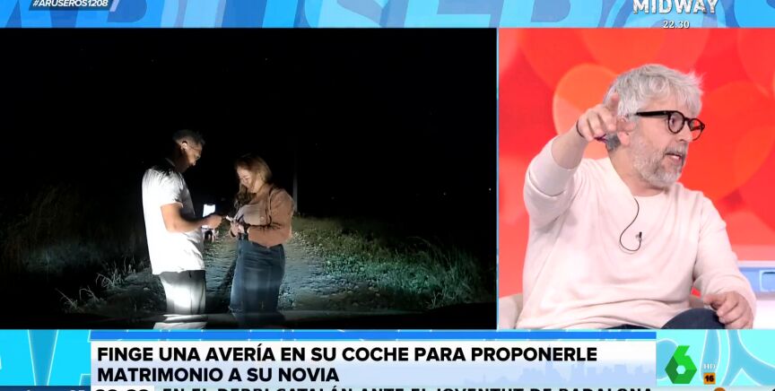 En plató celebran entre aplausos el éxito aunque no están muy convencidos de la forma en el que se ha declarado. "Perdona, pedir matrimonio a la luz de los faros no sé dónde le ves tú el romanticismo", dice Tatiana Arús en Aruser@s tras escuchar que esto es un 'SuperOlé'.
