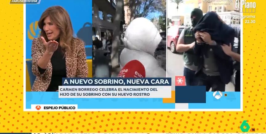 Gema López ha criticado el aspecto de Carmen Borrego al ir a conocer al hijo de su sobrina,Alejandra Rubio, y Carlo Costanzia. "Parece como un detenido", bromea la presentadora, que destaca que la hermana de Terelu Campos "parece que sale de declarar en el juzgado". Además, también le encuentra otro parecido: "Con ET, le falta la bicicleta".