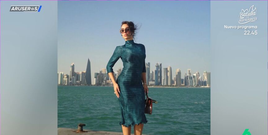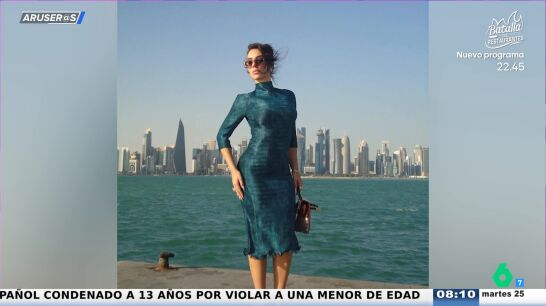 "Georgina Rodríguez sigue compartiendo imágenes de sus looks en Doha", explica Alfonso Arús, que destaca que es "todo un espectáculo". Por su parte, Tatiana Arús destaca en el vídeo principal de esta noticia que el color azul del vestido llega a difuminarse con la tonalidad del mar, que aparece detrás de la pareja de Cristiano Ronaldo.