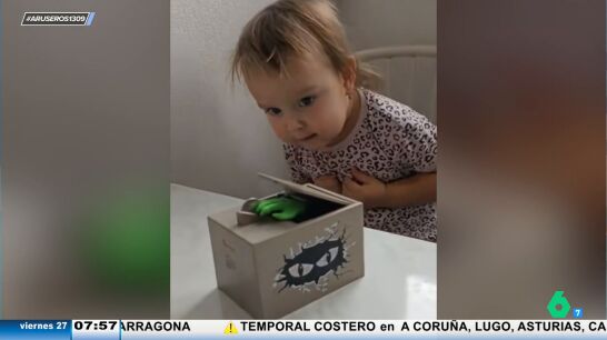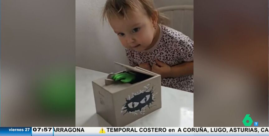La graciosa reacción de una niña al ver como se lleva su dinero una macabra hucha: "No va a ahorrar en su vida"