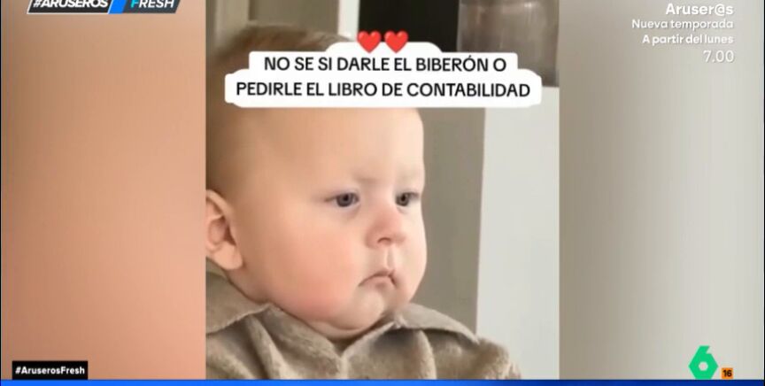 El gracioso bebé que parece estar atrapado en el cuerpo de un señor mayor: "¿Le doy un biberón o el libro de contabilidad?"