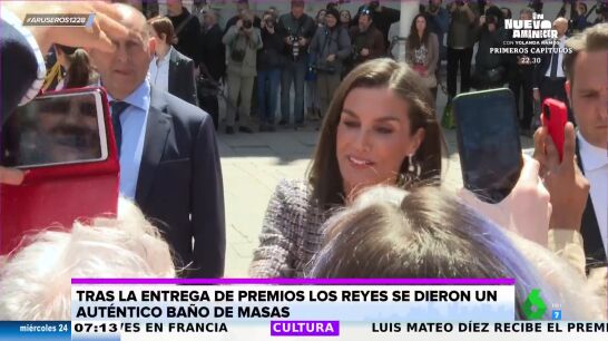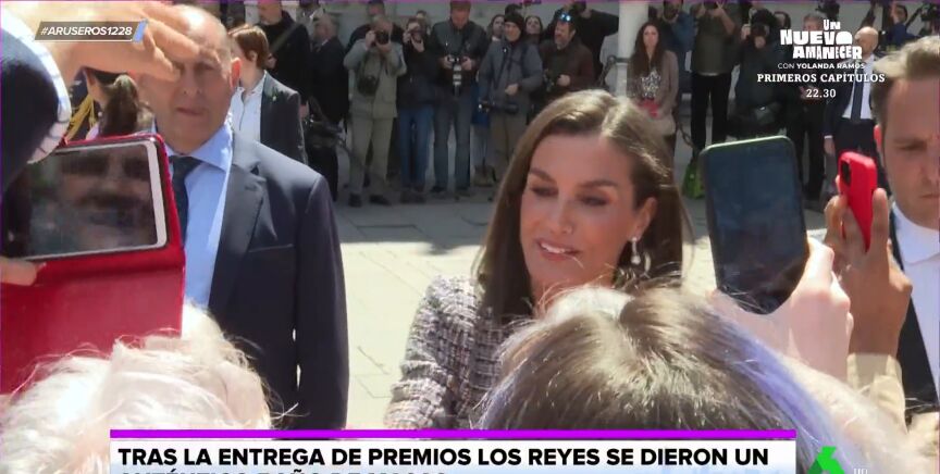 Después los reyes de España se dieron un baño de masas en la Plaza de San Diego. Entre gritos de "viva la reina" o "qué guapa eres", los presentes demostraron ser auténticos fans. "Me recuerda un poco como cuando ves a Micky Mouse por primera vez", afirma Tatiana Arús en el plató, donde Alfonso Arús destaca que también se escuchan gritos a Pedro Sánchez.