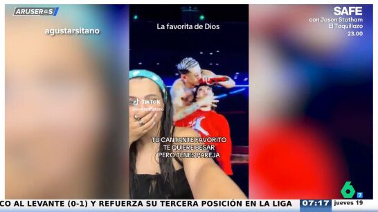 "¿Chicas, vosotras qué haríais si vuestro artista favorito os sube al escenario, os canta o bailay, no solo eso, quiere daros un beso pero tenéis pareja?". Con esta pregunta, la creadora de contenidoAgustina Sitano, desde su cuenta '@agustarsitano', ha abierto un debate que no ha tardado en hacerse viral.