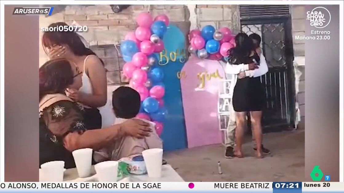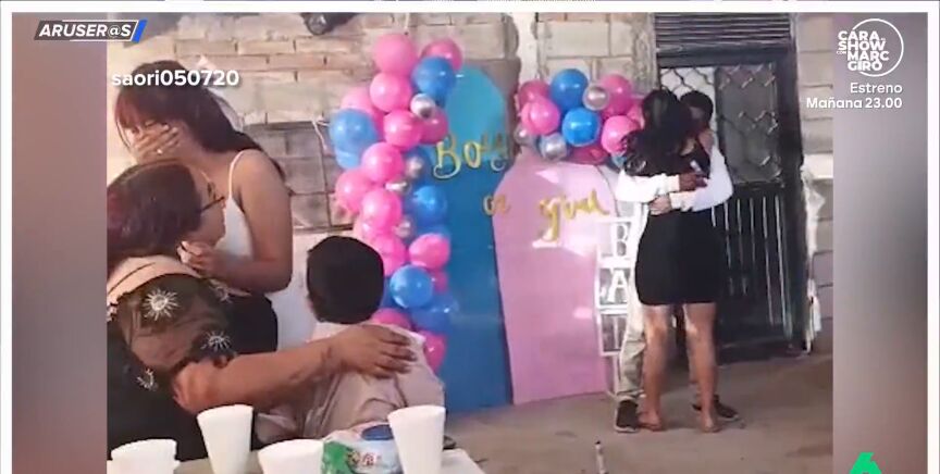 Con casi 13 millones de visualizaciones, este vídeo viral de @saori050720 se ha convertido en una sensación de internet, además de en un imprescindible de la sección de los 'vídeos vitales' de Aruser@s. La pareja que lo protagoniza está celebrando la fiesta 'gender reveal' en la que van a descubrir si su futuro hijo es niño o niña, pero la hermana de la embarazada, arruina el momento abrazando al futuro padre y acaparando todo el protagonismo. "A mí lo que me parece mal es que el padre no haga nada", dice Hans Arús en el plató del programa de laSexta. Y es que, mientras su mujer se va llorando, él sigue abrazado tan feliz a su cuñada.