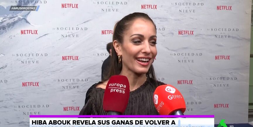 Hiba Abouk ha acudido a la presentación de la película de Juan Antonio Bayona 'La sociedad en la nieve', que se ha convertido en una de las seis candidatas a 'mejor película' de la 81 edición de los Globos de Oro. También será la representante española de los Oscar, y posee 13 nominaciones en los Goya.