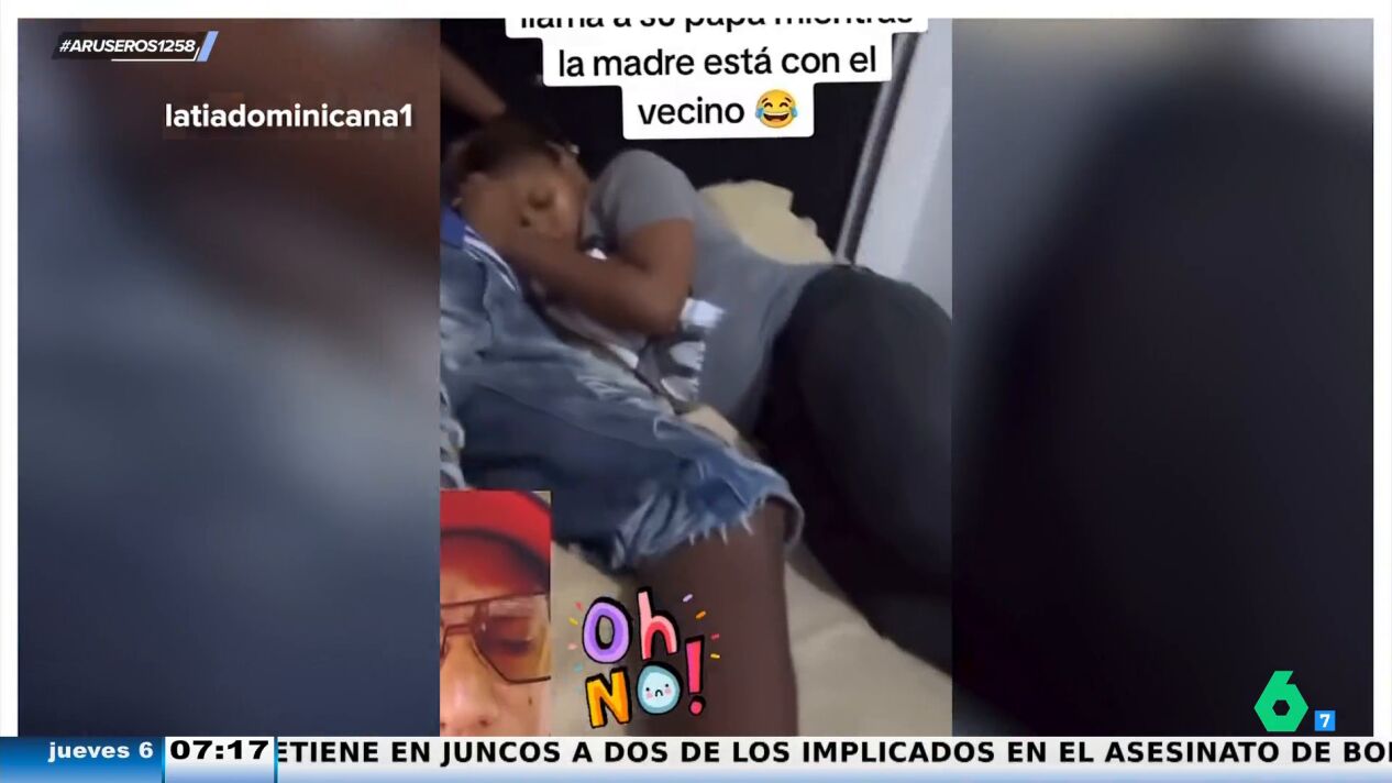 "¡No sé si ya lo sabía, pero ahora ya sí", así reacciona Alfonso Arús en el plató de Aruser@s con el momento viral en el que una hija le enseña por videollamada a su padre la infidelidad que está cometiendo su madre con el vecino. "No quiere irse porque son las dos de la mañana", argumenta la niña frente al padre, que no da crédito con lo que ve. Y es que la madre se encuentra durmiendo plácidamente en la cama con el vecino. "¿Te lo enseño? ¡Míralo! ¡Está ahí con mamá. Es el que vive en casa de María", afirma la niña a su padre, que le responde atónito: "¡Ay, el vecino de al lado!".