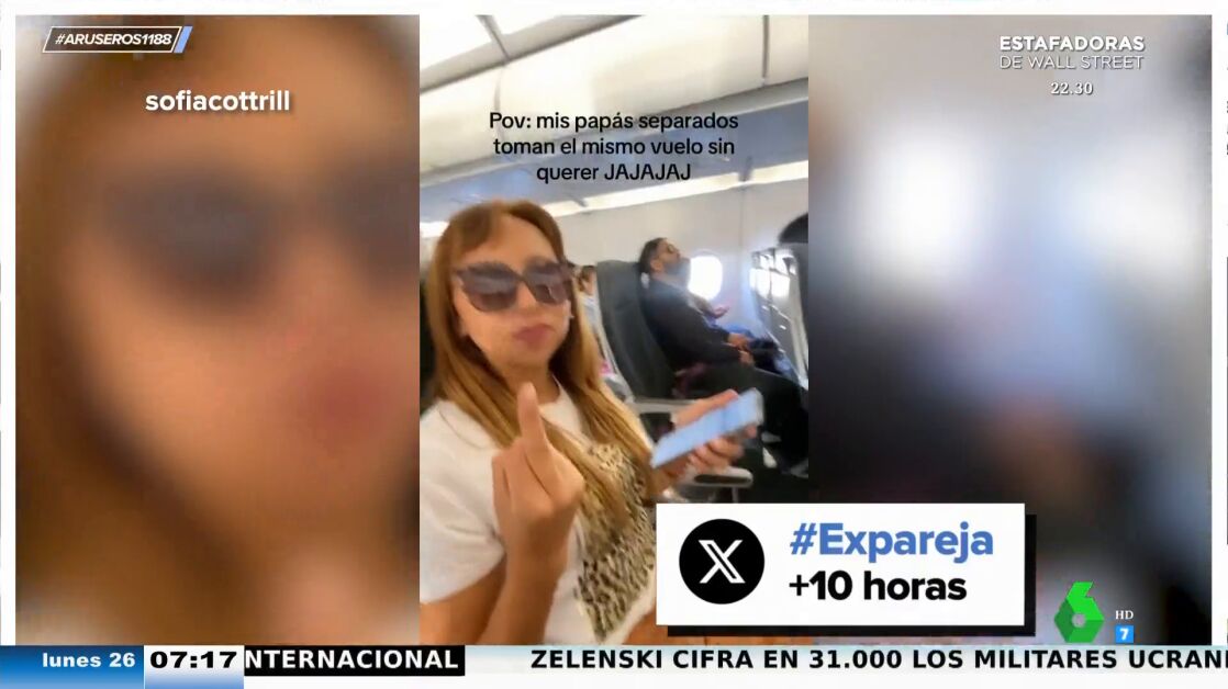 Esta chica se ha divertido mucho a bordo del avión que ha vuelto a reunir, sin quererlo, a sus padres divorciados. La joven no duda en sacar el móvil para grabar la reacción de ambos al saber que están en el mismo vuelo.