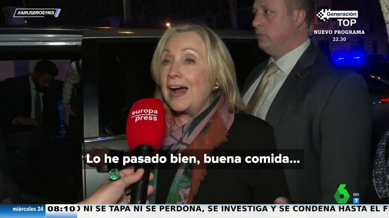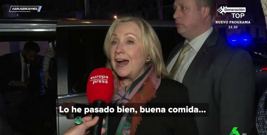 Preguntada sobre ello durante su visita a Madrid, Hillary Clinton solo tuvo buenas palabras para nuestro país: "Me encanta España. Buen tiempo, buena comida, gente bonita, un poco de baile..". Incluso, la exsecretaria de Estado de EEUU ha confesado al reportero que le gustaba su abrigo. Puedes ver el momento al completo en el vídeo principal de esta noticia.