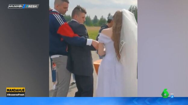 En evidente estado de embriaguez, este joven asiste a su propia boda y no puede casi mantenerse en pie. Esta ha sido la reacción de los colaboradores de Aruser@s a este vídeo.