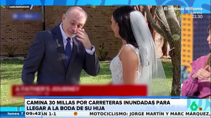 El huracán Helene deja grandes consecuencias en algunas ciudades de Estados Unidos y una bonita historia de superación. Un padre anda 48 kilómetros por las carreteras afectadas por el temporal para llegar a tiempo a la boda de su hija.