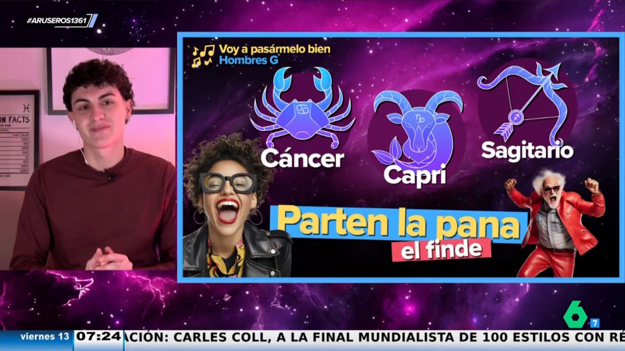 Tenemos por delante la noche del viernes, sábado y todo el domingo y Jabifus, astrólogo de Aruser@s, nos cuenta qué signos van a disfrutar de un fin de semana "de desenfreno", cuáles será mejor que aprovechen alguno de los rituales que ha mostrado el astrólogo en el plató para centrarse y estar tranquilos, y quienes van a estar más guapos que nunca.