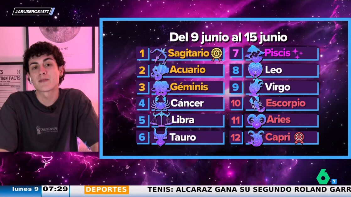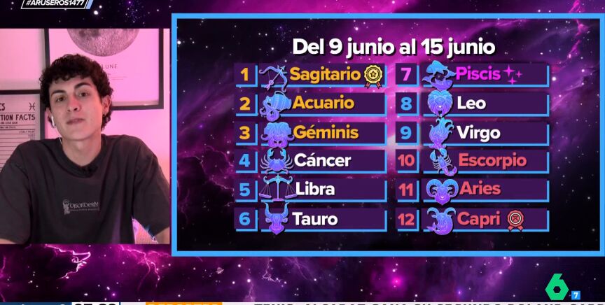 Como cada lunes, Jabifus, astrólogo de Aruser@s, llega al plató para avanzarnos qué dicen los astros sobre cada signo del zodiaco para esta semana del 9 al 15 de junio.