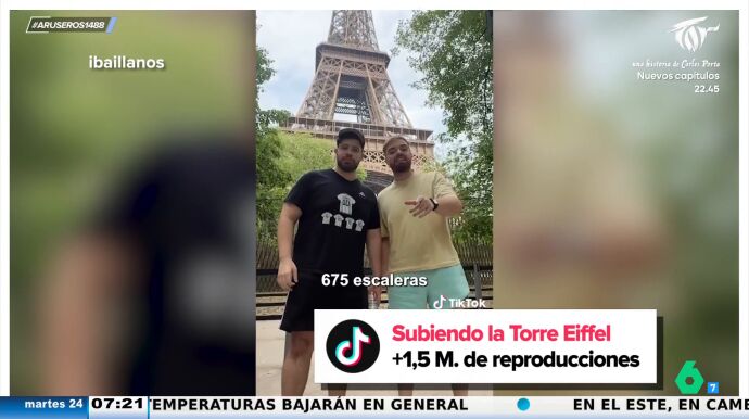 Ibai Llanos intenta subir la Torre Eiffel en tiempo récord: "Los franceses están flipando con nosotros"