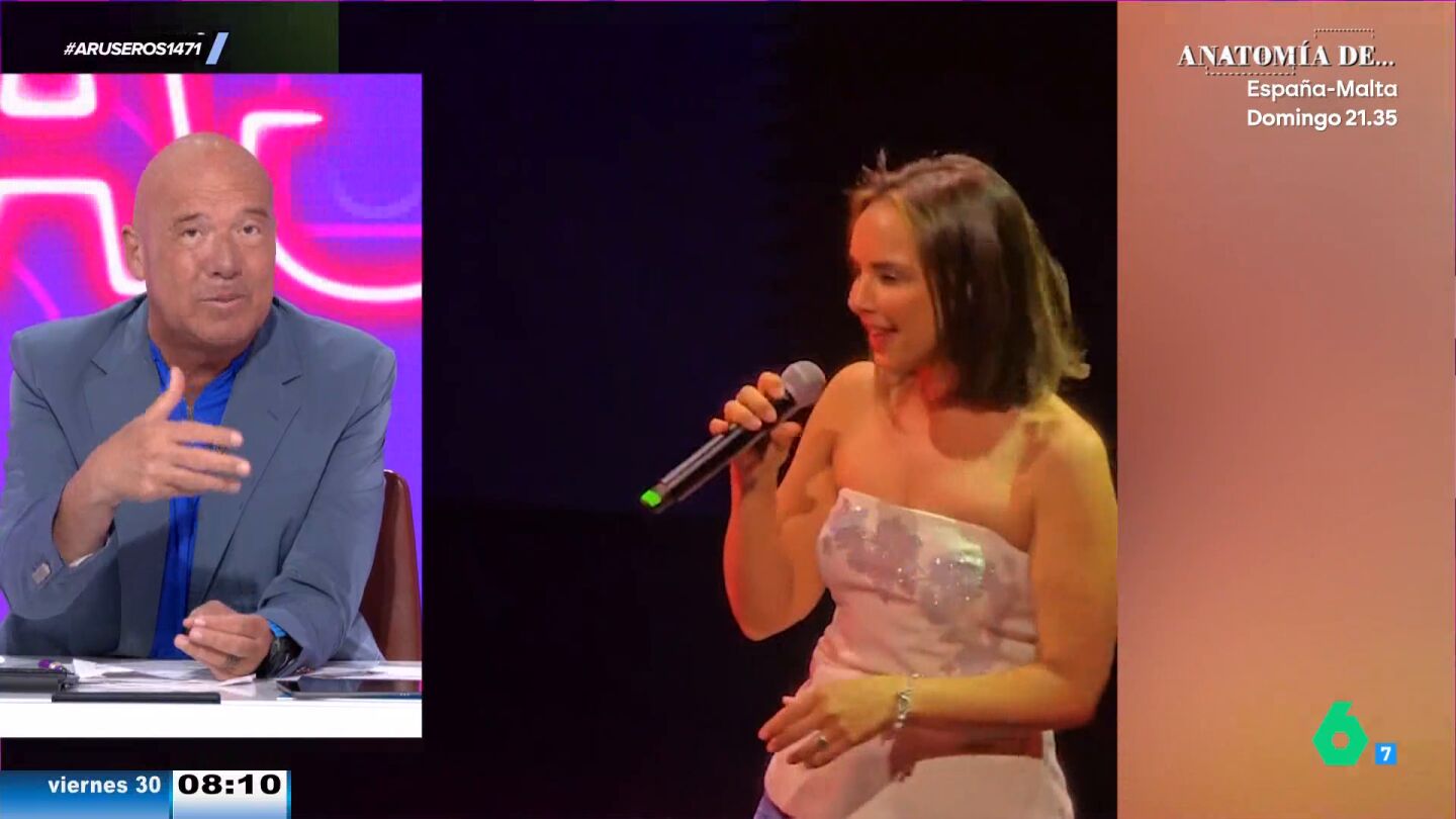El presentador de Aruser@s reflexiona sobre la próxima representación de España en Eurovisión: "Es algo que creo que nunca ha pasado en la historia de Eurovisión y me parece que sería una brillante idea". "¿Y si juntamos a muchos artistas diferentes y fueran todos juntos?", pregunta Alfonso Arús en el plató, donde Tatiana Arús recuerda que "eso pasó con Rosa de España que fue con Bisbal, Chenoa o Bustamante".