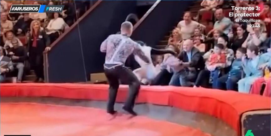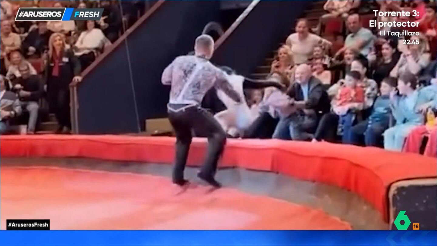 No es la primera vez que en Aruser@s somos testigos, a través de los vídeos que nos llegan, de momentos bastante peligrosos que se dan en los circos, pero en esta ocasión, las imágenes ponen los pelos de punta.