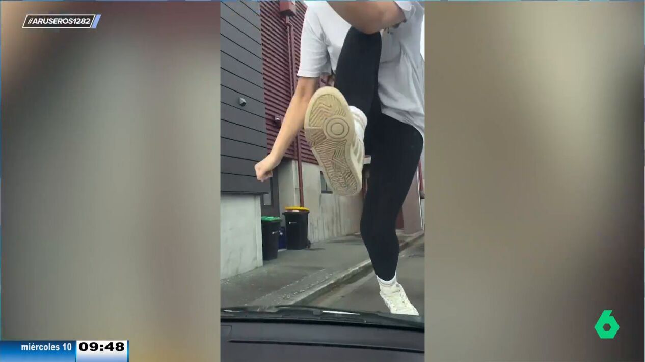 Alfonso Arús trae de nuevo al plató deAruser@s otro impactante vídeo viral dado por una discusión de tráfico. En las imágenes vemos a una joven que sale corriendo hacia el coche que tiene detrás aparcado, subiéndose sin pensarlo y de golpe al parabrisas, provocando así que el vidrio frontal se rompa. La luna del coche se parte en mil pedazos, y aun así la joven continúa con su enfado y le salta a la mujer que está dentro del auto: "¡Vete a la mierda!".