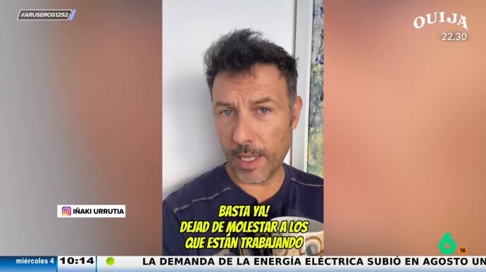 "Ya están hechos todos los chistes. Ya se han grabado todos los vídeos y todos los sketches", asegura, visiblemente harto, Iñaki Urrutia acerca de las bromitas de ligar en Mercadona. "Basta ya, dejad de molestar a los que están trabajando", pide a través de sus redes sociales en este vídeo que rescata Aruser@s para su sección de los 'zascas'.