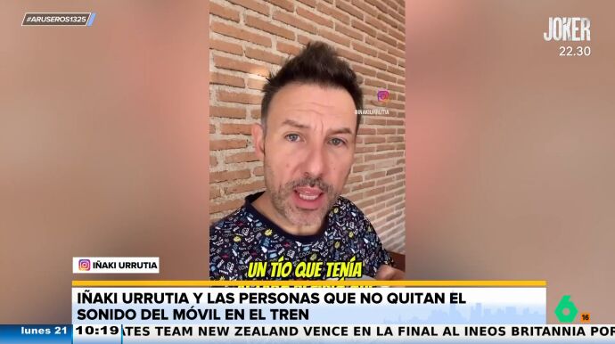 Iñaki Urrutia manda un mensaje a las personas que no bajan el sonido del teléfono en el tren. El humorista piensa que si pasa esto tienes derecho a mirar el móvil del que tienes al lado en el viaje.