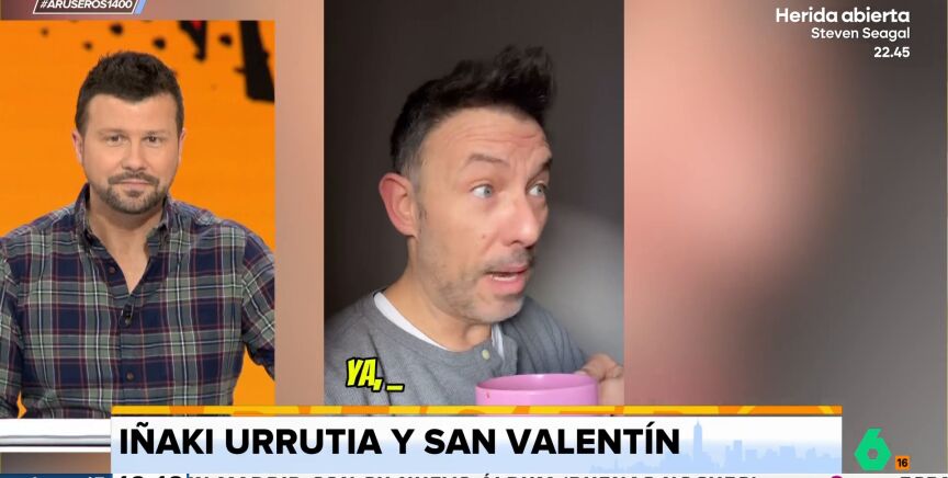 Alfonso Arús muestra en el plató el último 'zasca' de Iñaki Urrutia, donde el humorista carga contra los que "dicen que hay que regalar cosas cualquier día del año y no solo en San Valentín".
