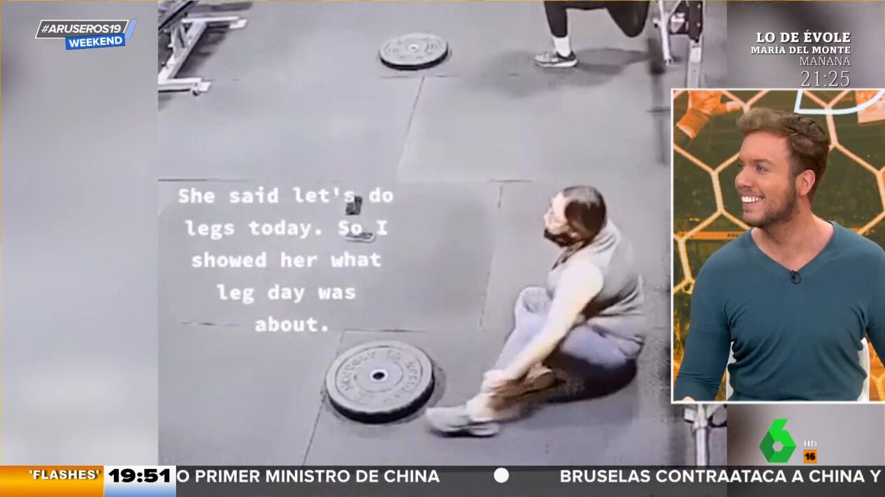 Este vídeo de Aruser@s Weekend muestra cómo si te levantas con mal pie... no hay nada que lo arregle. Una mujer acude al gimnasio para hacer sentadillas, realiza una, se pone a calentar antes de continuar y en ese momento se dobla el tobillo acabando con un esguince que le obliga a abandonar el entrenamiento