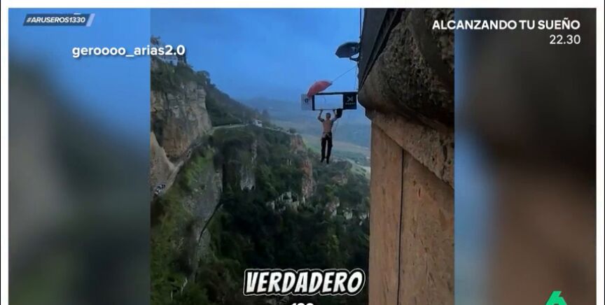 Día 300: una dominada por cada día del año. Gero Arias, un influencer argentino, se ha colgado este sábado del Puente Nuevo de Ronda (Málaga) para realizar 300 dominadas, dentro del reto viral que está llevando a cabo. El creador de contenido se ha suspendido a casi 100 metros de altura de uno los arcos del puente.