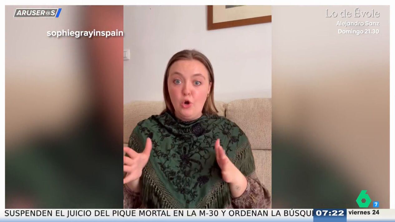 En Aruser@s, la Feria de Abril vuelve a colarse entre los virales. Esta vez, Hans Arús introduce el vídeo de la influencer Sophie Gray, una joven estadounidense con pareja andaluza que ha conquistado a sus seguidores gracias "a su mezcla de acento" y su visión cercana de la cultura española.