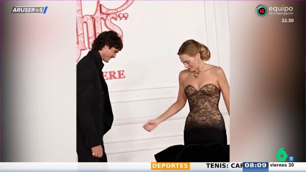 "Como para que se te rompa la cadenita y se te vaya por el váter", bromea Alfonso Arús en el plató de Aruser@s, donde Tatiana Arús enseña también el divertido momento de Jacob Elordi al no saber dónde ponerse para posar por la falda voluminosa de su compañera de reparto. "Qué cuidadoso", destaca Tatiana Arús, que enseña también el look con corpiño elegido por Cara Delevingne, amiga de Margot Robbie.