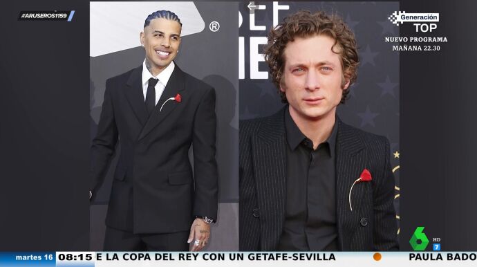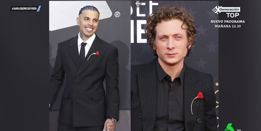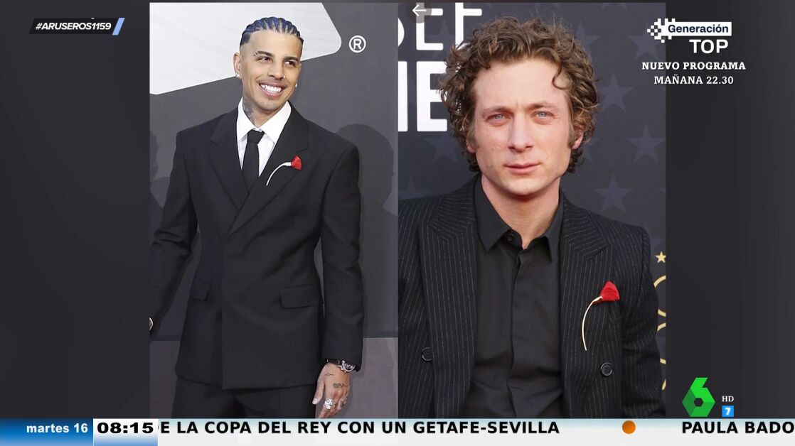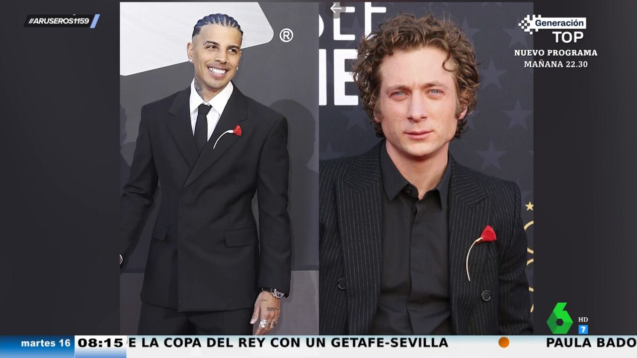 Ahora, para sorpresa de todos, Jeremy Allen White ha lanzado un inesperado guiño a su novia con un detalle en su look en los Critics Choice Awards. Y es que el actor apareció con un broche en forma de amapola igual al que llevó Rauw Alejandro a los Latin Grammy en 2022. Puedes ver el momento y el análisis en el plató de Aruser@s en el vídeo principal de esta noticia.