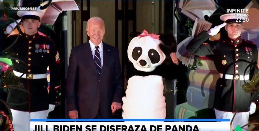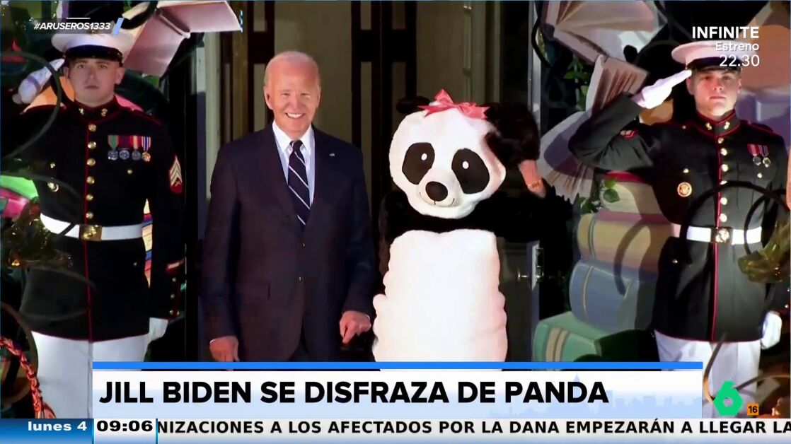 La elección del disfraz de la primera dama ha causado revuelo entre los tertulianos de Aruser@s. "Hay muchos disfraces en Halloween, pero de oso panda, ¿es un poco extraño no?", pregunta Óscar Broc. "Lo que no tiene sentido es que él no vaya disfrazado", opina Tatiana Arús. Y es que, el mandatario Joe Biden también quiso participar en la celebración regalando caramelos y otros obsequios a los niños, mostrando cercanía con aquellos que se acercaban a jugar a 'truco o trato', pero no se disfrazó.