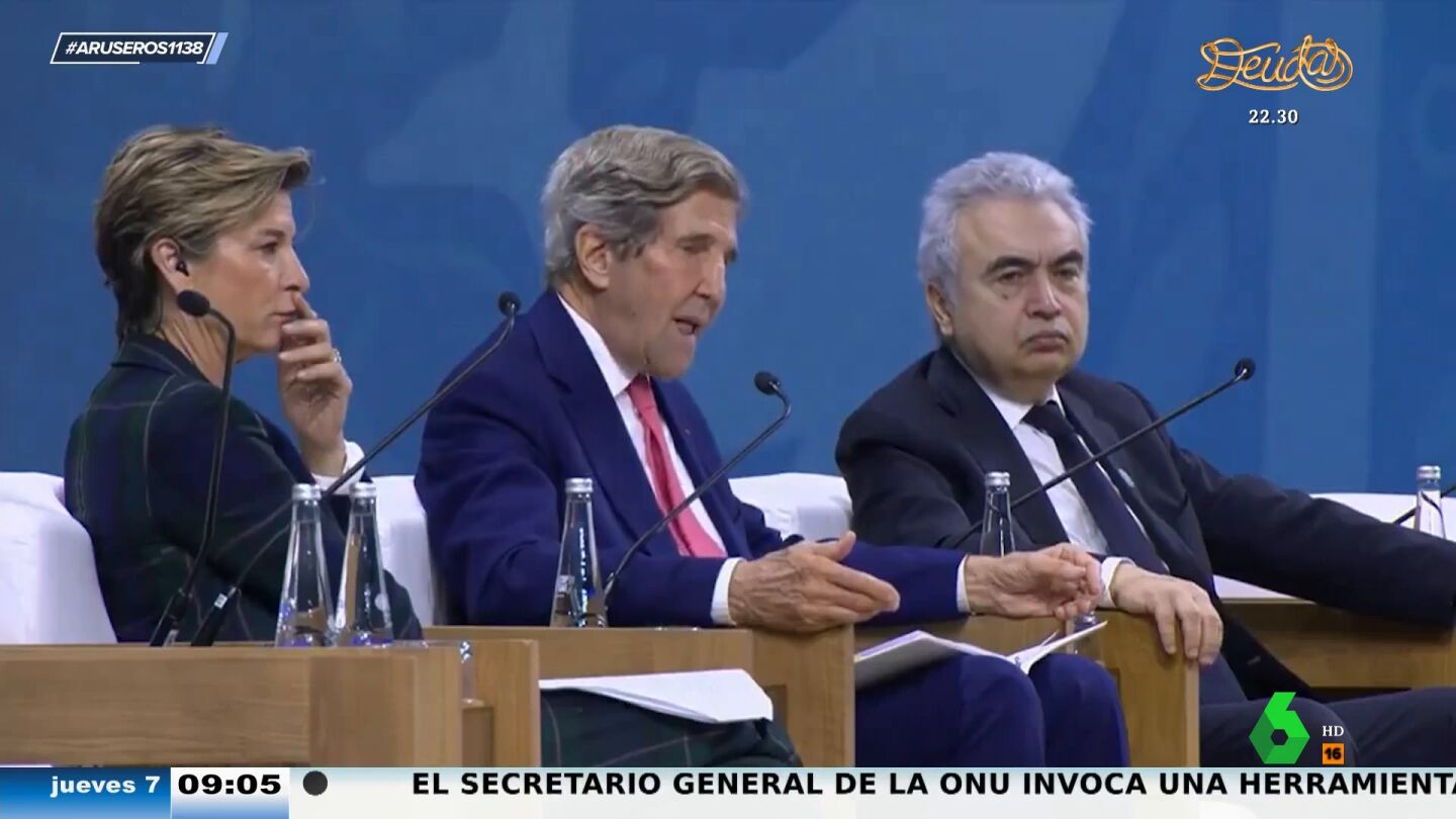El enviado de Estados Unidos a la Cumbre del Clima de Dubái ha tenido un pequeño percance en medio de su acalorado discurso en un tenso debate. Ojo a las caras de quienes se sientan a su lado.