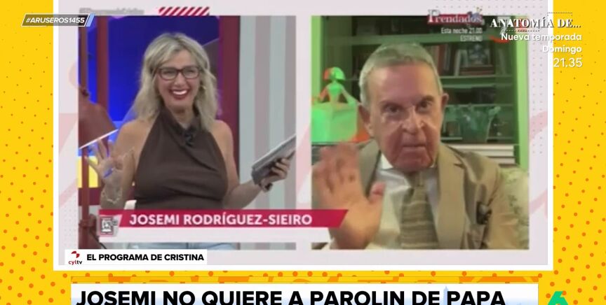 En esta ocasión, el protagonista del 'zasca' presentado en Aruser@s ha sido Josemi, quien parece tener "sus preferencias, pero son negativas". "No quiero que salga Parolin, si no me gustaba el anterior, imagínate si sale Parolin, que busquen a otro", sentencia el periodista.