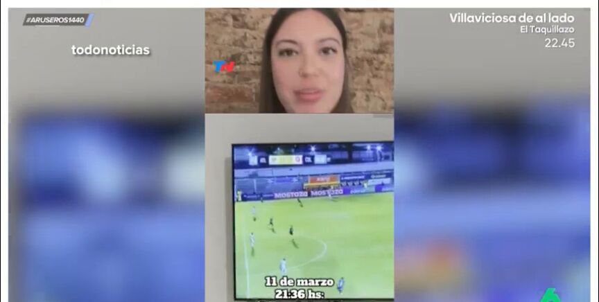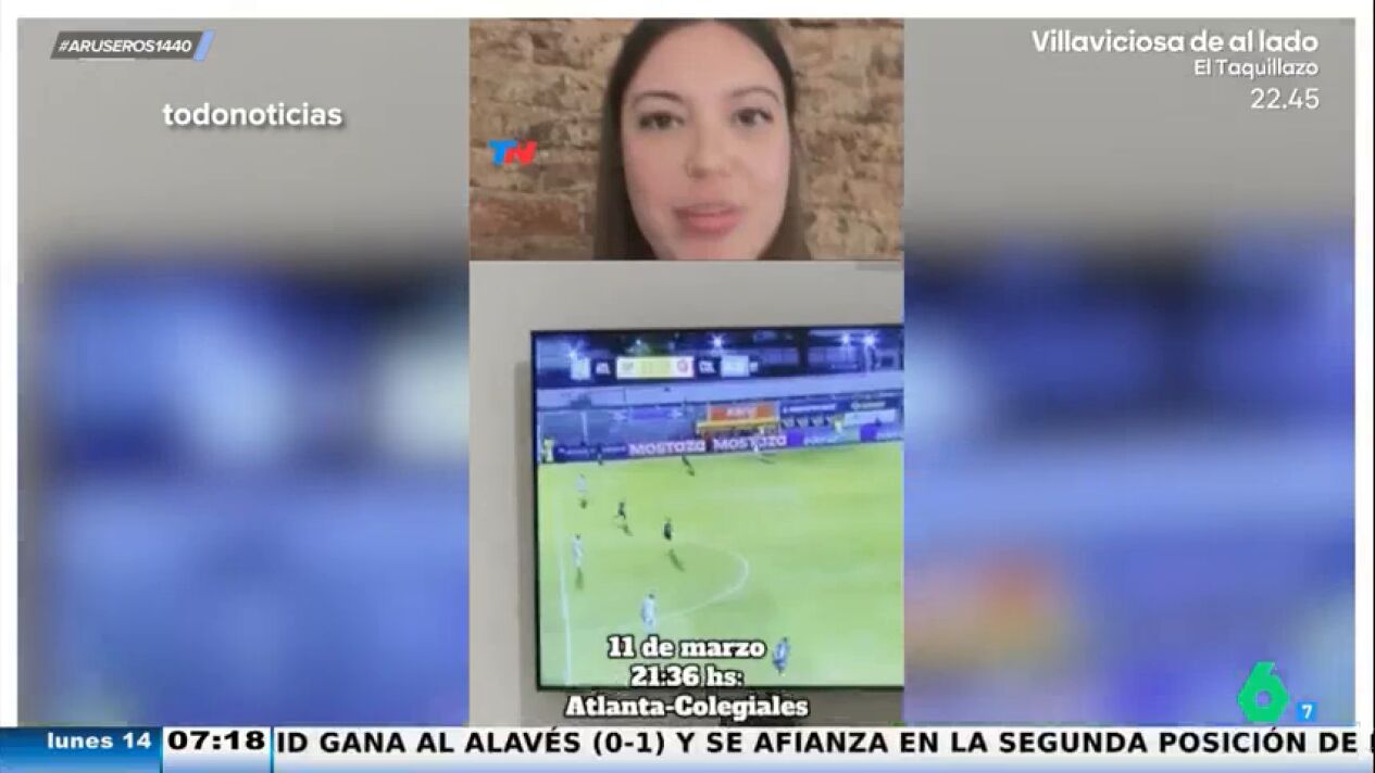 Alfonso Arúsmuestra en el plató de Aruser@s el viral de una joven argentina a la que le parece una auténtica locura todos los partidos de fútbol que se puede llegar a ver su novio desde que se mudaron a vivir juntos.