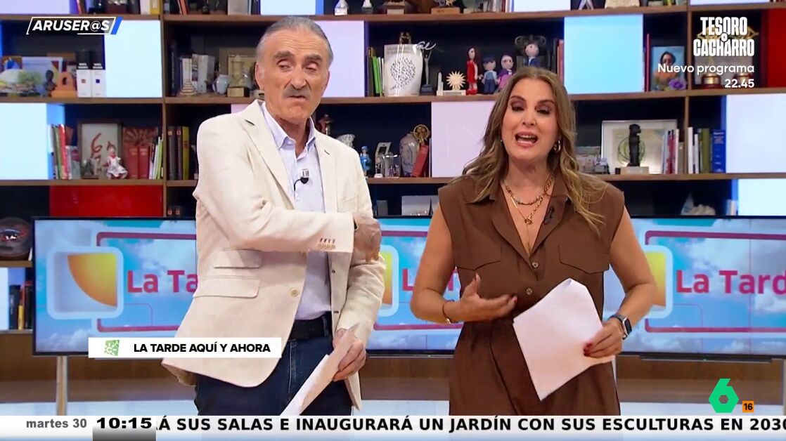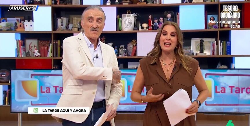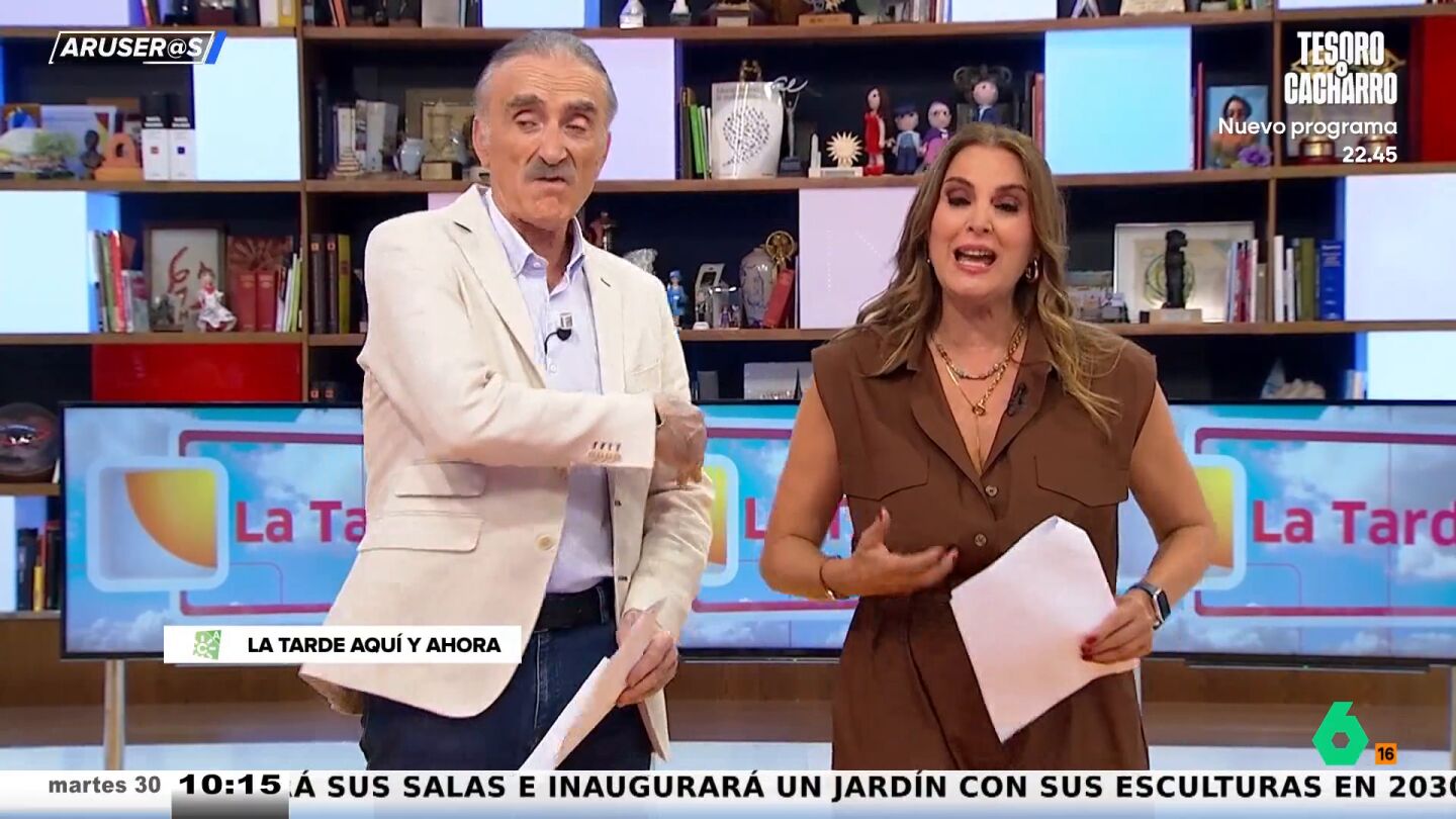Desde el plató de Aruser@s, los colaboradores ríen al ver cómo no puede controlar su rabia. "Le sale espuma de la boca", comenta Óscar Broc, al ver su enfado.