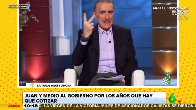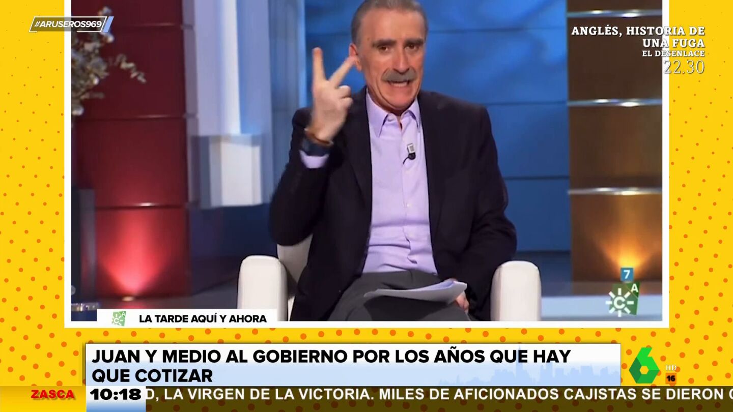 "Cuando era pequeño decían que había una vida 'más allá' y luego he descubierto que es verdad, que hay una vida 'más allá', porque en esta no te da tiempo a cotizar", reflexiona Juan y Medio en su programa 'La tarde aquí y ahora' de Canal Sur, tal y como podemos ver en el vídeo principal de esta noticia.