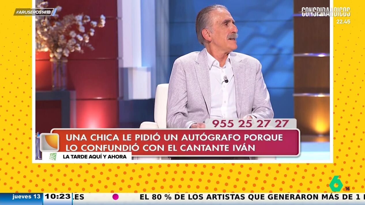 Juan, el hombre que llega al plató en busca del amor, recuerda cómo de joven le confundían con Iván, el conocido cantante español de 'Te quiero tanto'. Hasta el punto de que "le paraban por la calle y le pedían autógrafos". "¿Se acuerdan de Iván?", pregunta Juan y Medio al público, que no responde. "El público ha muerto, se han quedado pajarito", bromea.