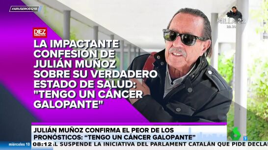 La revista '10 minutos' lleva en su portada la enfermedad de Julián Muñoz, que fue fotografiado compartiendo un desayuno junto a su nieta y la pareja de la joven. Según cuenta Tatiana Arús, que muestra la imagen en el vídeo principal de esta noticia, el propio Julián Muñoz confirmó a la reportera que tiene "un cáncer galopante".