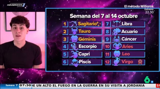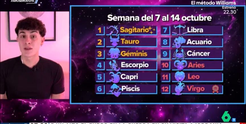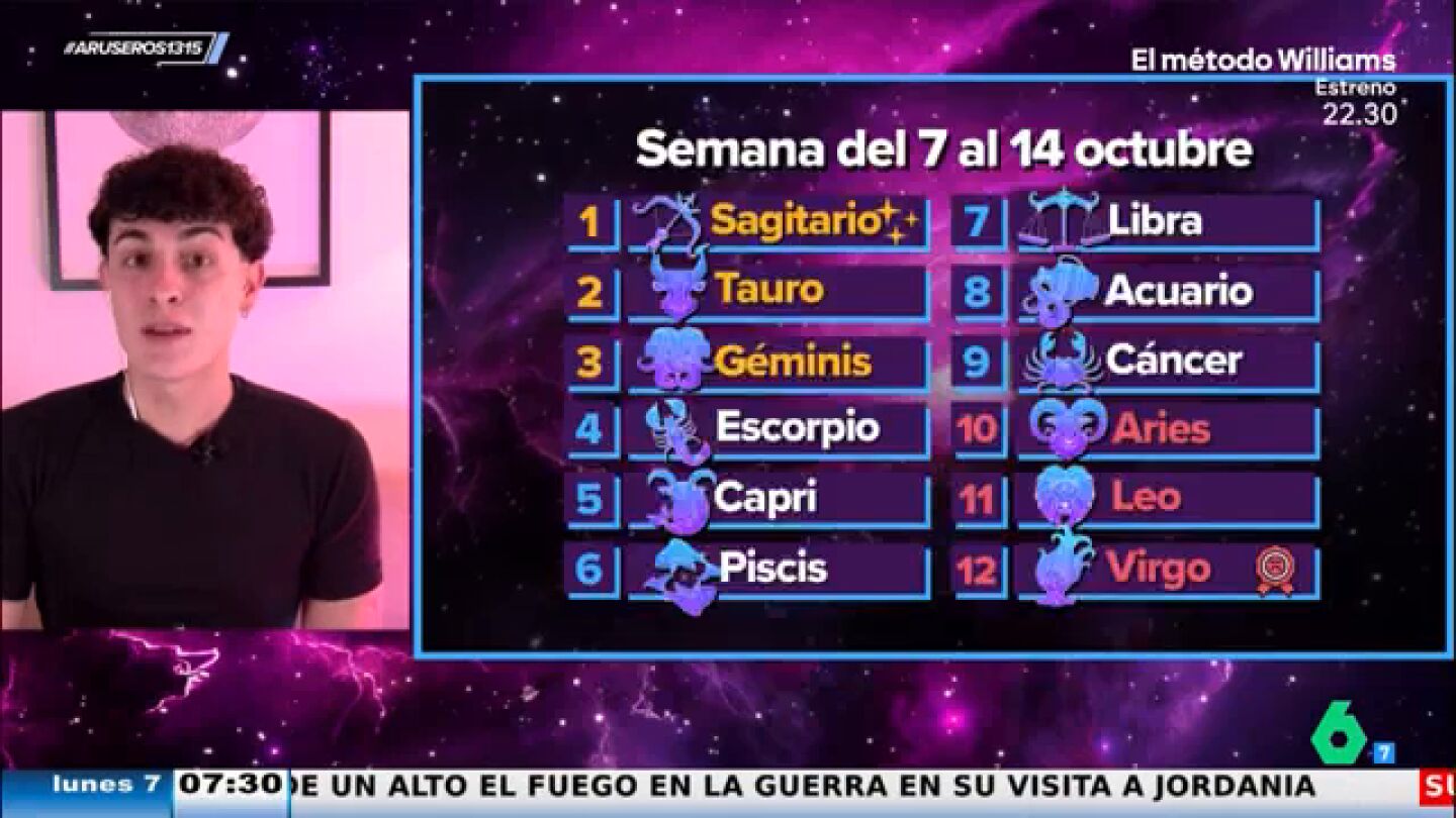 El astrólogo comenta que, además, tendremos a Mercurio en Escorpio: "Nos vamos a enterar de cosas que no nos gustan mucho, sobre todo a partir del viernes". Aquí os dejamos el rankings semanal de los signos: Sagitario, Tauro y Géminis lideran la tabla.